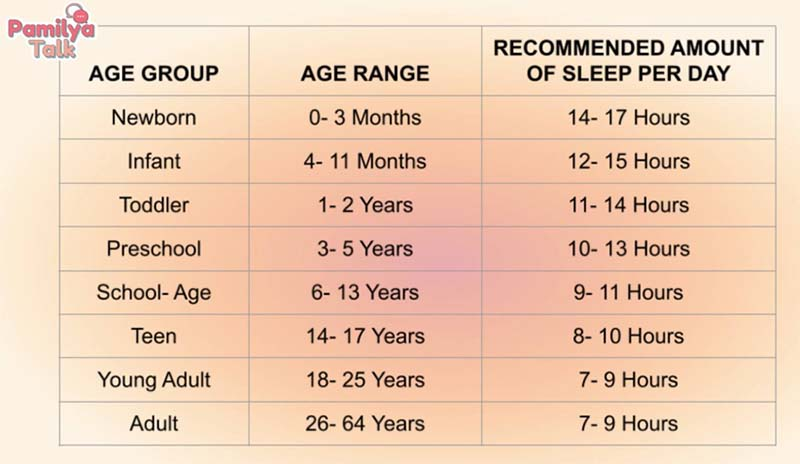 “We must set our schedule. Hindi yung kung kailan lang natin maisip matulog, saka lang tayo iidlip. Sabi ko sa mga patients ko, tratuhin din (ang pagtulog) na parang pumapasok sa trabaho. Kung ang trabaho ay 8 a.m. – 5 p.m., dapat yung pagtulog natin either 10 p.m. – 6 a.m. or 11 p.m. – 7 a.m.,” explains Dr. Jun. Below is a chart of the recommended number of hours of sleep per day according to the National Sleep Foundation: